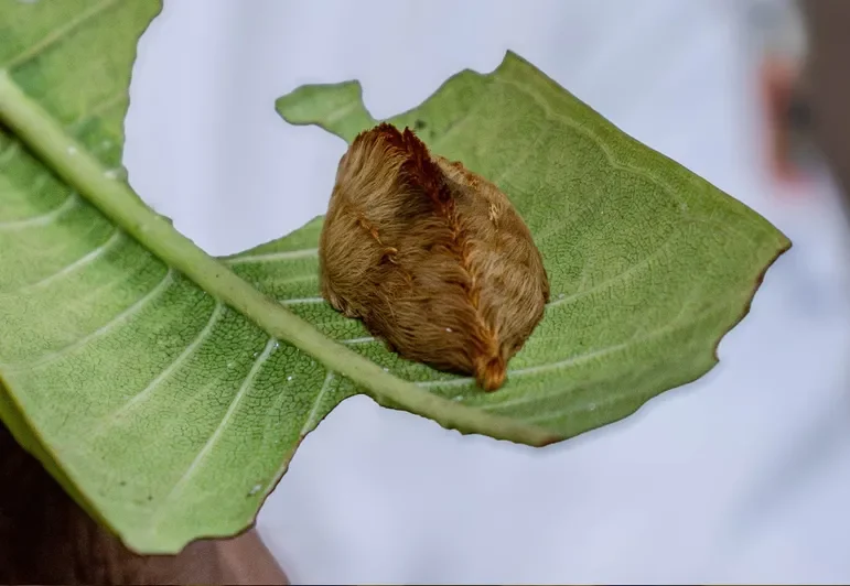 La oruga se defiende pasivamente: ni mordida ni picadura