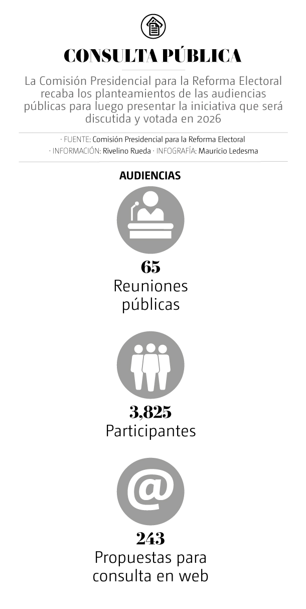 La Comisión Presidencial para la Reforma Electoral recabará los planteamientos de las audiencias públicas para luego presentar una iniciativa que eventualmente tendrá que ser discutida y votada en el Congreso de la Unión en el periodo de sesiones que comprende de febrero a abril de 2026.